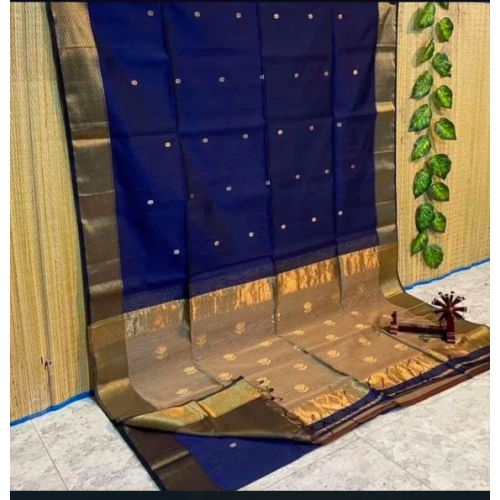 Presenting a party wear silk saree with weaving border. Maheshwari original handwoven saree Fabric silk by cotton Gold zari border and buti all over Length 6.25 with blouse contrast