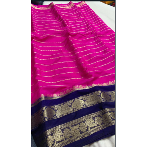 Saree fabric: Mysore crepe silk saree with viscose Zari lines, contrast double side Zari border , contrast Pallu , contrast blouse