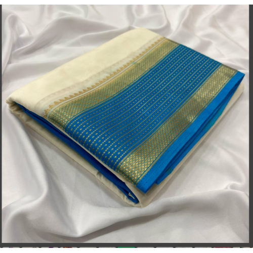Product type:A beautiful party wear Mysore crepe silk saree with contrast color border with katha work with border chit woven pallu