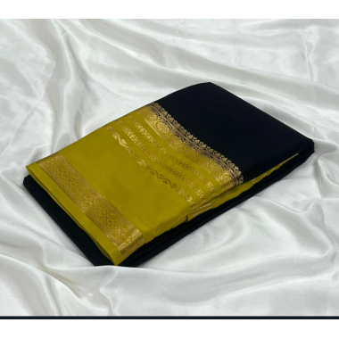 Product type :A beautiful party wear mysore crepe silk saree with contrast color border with katha work with border chit woven pallu
