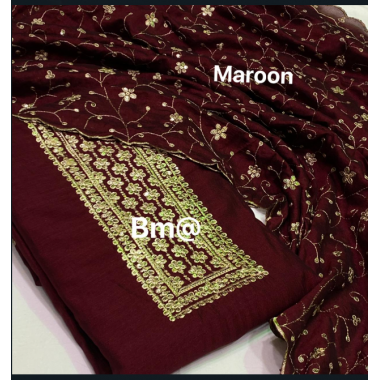 A beautiful salwar dress material in tussar silk fabric with Jari embroidery work in beautiful embroidery work