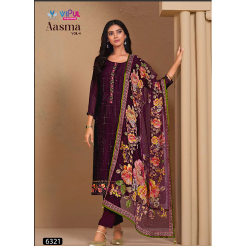 Product type: Vipul brand presenting you a beautiful semi stitched salwar dress material in Chinnon fabric with embroidery work.