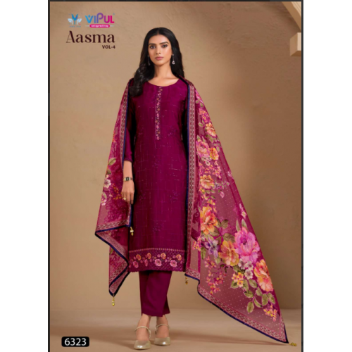Product type: Vipul brand presenting you a beautiful semi stitched salwar dress material in Chinnon fabric with embroidery work.