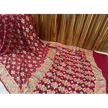 | SAREE FABRIC | Pure Banaras georgette handloom bandhej saree |