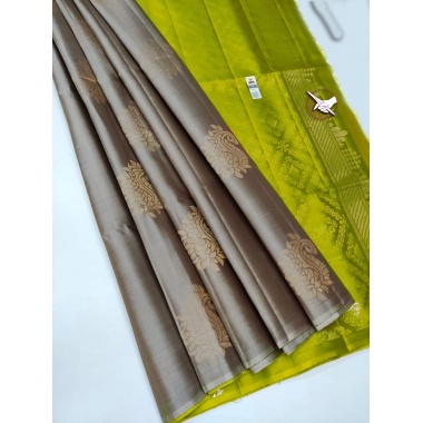 These borderless silk sarees designed beautiful Copper Zari flower with Copper Carry meena butta . Rich pallu sarees embellished With Blouse Your great comfort or beauty fills with softness. | |