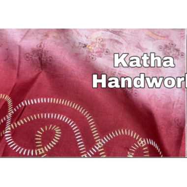Work: Katha hand work with digital print in saree