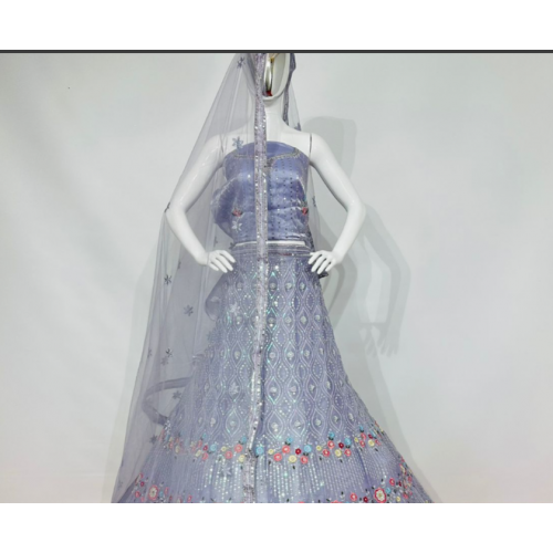 | Lehenga Style | Fabric: Premium net /Silk Work: thread Embroidery work with sequence work Inner:Cotton Flair : 5m Size : waist-43" Length-42" Weight : 4kg | |