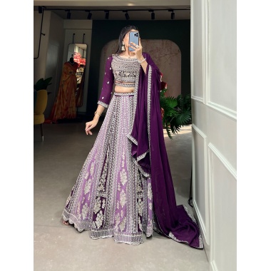 As sparkle like stars in the night sky, with a beautiful purple color lehenga embodies the radiance of tradition and the beauty of celebration.