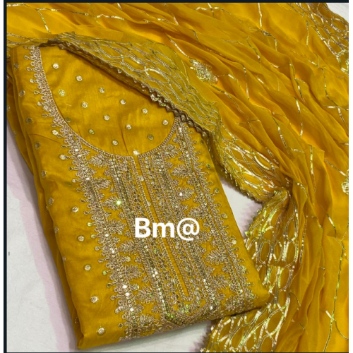 BM presenting a beautiful fancy Banaras Jacquard silk with inner and Codding embroidery work salwar dress material -SL98-A
