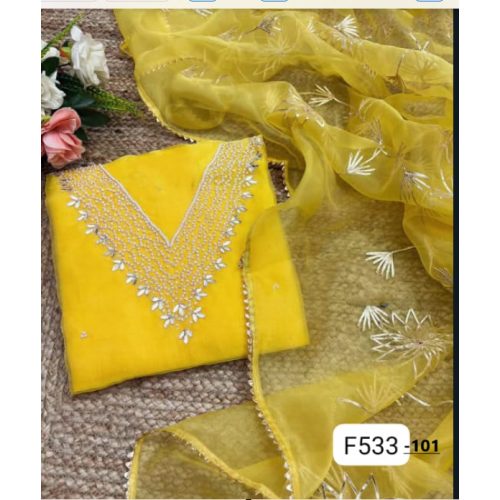 p>Product type:A beautiful organza silk salwar dress material with embroidery work .