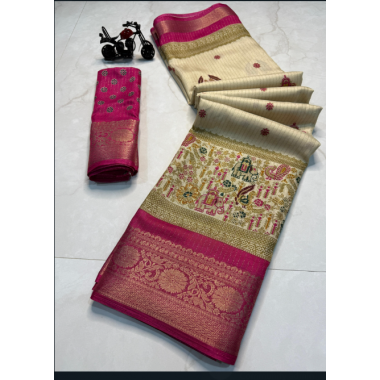 A beautiful party wear rekko silk sarees with all over floral design along with contrast weaving border-DV902