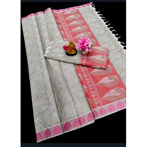 The soft cotton saree with beautiful thread weaving border saree with running blouse . For this summer season we are presenting a beautiful collection of cotton saree with thread work-JSK9001