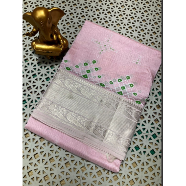 A very soft saree which comfortable to wear for party and all special occasions which makes you a grand look. We are presenting you a beautiful collection of pure Mang Alagiri cotton silk saree with weaving border and Kollam print pattern all over saree with runing blouse-MG0023MG