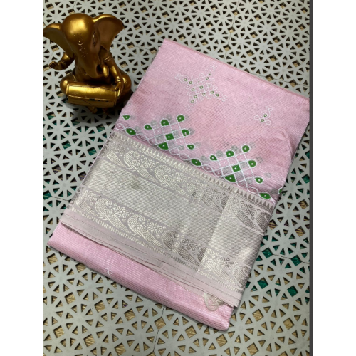 Model:Kanchi border kolam screen printing pattu sarees
