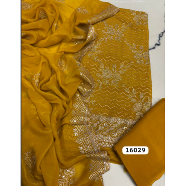 Product type: A beautiful pure luric chiffon fabric salwar dress material with serkosi work