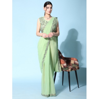 Beautiful readymade blouse with ready to wear saree with necklace sleeve