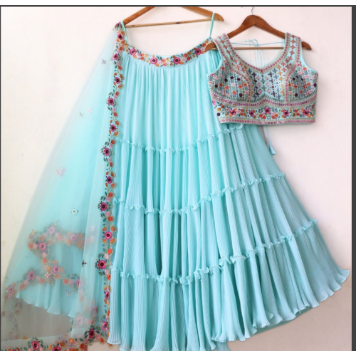 Product code: A new arrival of party wear light pink color semi stitched lehenga in faux georgette fabric .