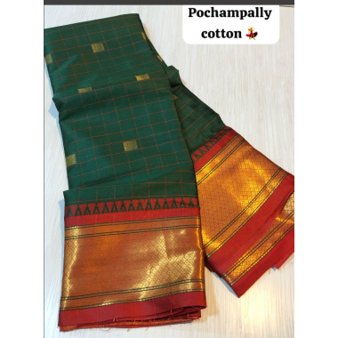 Product type:New arrival of party wear pochampalli cotton silk saree with Mahabathi check pattern with contrast color blouse and pallu.