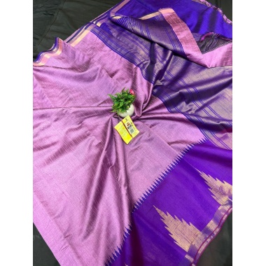 Product type:Handloom pure raw silk saree with weaving temple design and contrast color pallu
