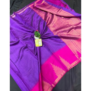 Product type:Handloom pure raw silk saree with weaving temple design and contrast color pallu