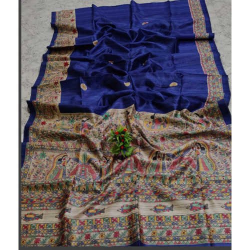 Productt type:Madhubani ghicha silk saree with hand print design all over the saree