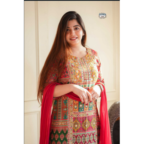 Pure Fendy Silk with Heavy Embroidery Sequence Work Fully Stitched Top–Sharara–Dupatta Set-NSR‑887