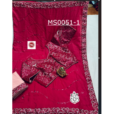 Product type:Party wear maslin silk saree with designer work come with ready to wear blouse and unstitched blouse piece also .