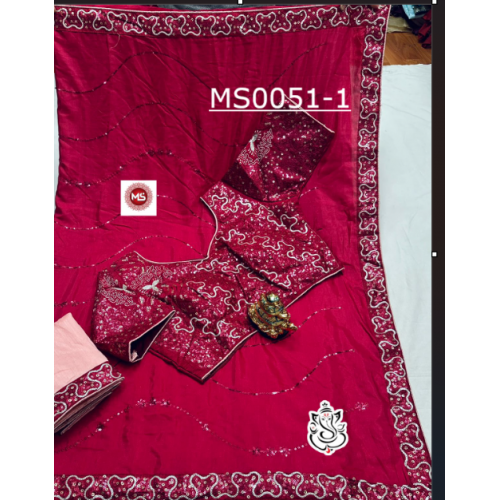 Party wear maslin silk saree with designer work come with ready to wear blouse and unstitched blouse piece also -MS00351