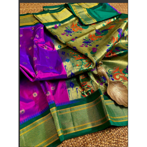 Product type: A perfect handloom Narayan pet pattu sarees all over Zari woven Meena Motti pattern with Kanchi temple borders.