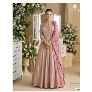 Sayuri Designer's new catalog, Parampara, features a stunning 2-piece suit with a free-size stitched fabric made from premium real georgette-Parampara=5808