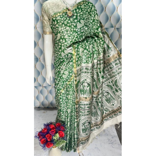 Product type: Party wear grand launching Semi Katan silk saree with block madhubani print