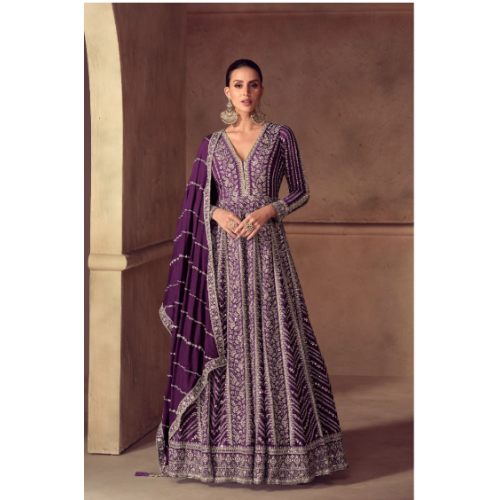 Presenting a premium Real Chinon Anarkali Gown with exquisite heavy embroidery work, designed for an elegant and festive look.