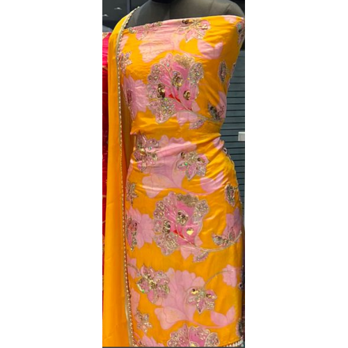 Product type: Pure Crepe silk fabric salwar suit with heavy embroidery work .