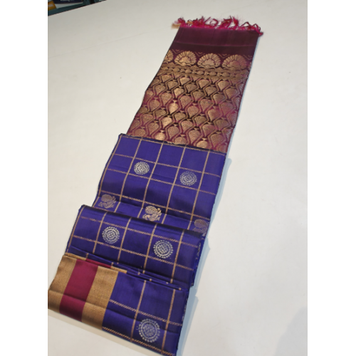 Pure handloom Kanchipuram soft silk sarees with checks buttis and Gap border traditional weaving work pure soft Kanchipuram silk saree with heavy weaving palluProduct type: Pure handloom Kanchipuram soft silk sarees with checks Buttis and Gap boarder,