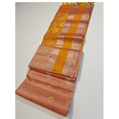 Pure handloom Kanchipuram soft silk sarees with checks buttis and Gap border traditional weaving work pure soft Kanchipuram silk saree with heavy weaving palluProduct type: Pure handloom Kanchipuram soft silk sarees with checks Buttis and Gap boarder,