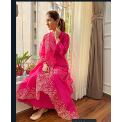 Product type:Ready to wear New Launching Pure Chanderi Kurti Bottom With Organza Dupatta with Embroidery Work