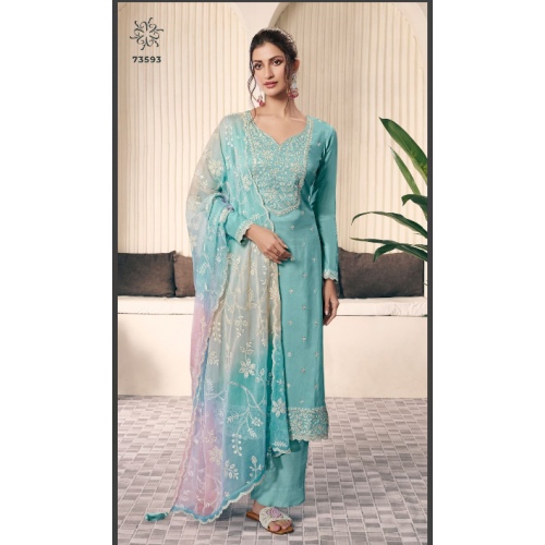 Kulesh Ombre Dress Materials feature exquisite Moonga Silk tops with heavy embroidery work. Perfect for all special occasions-73593