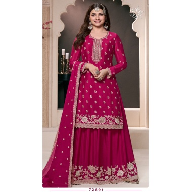 Pure Fendy Silk with Heavy Embroidery Sequence Work Fully Stitched Top–Sharara–Dupatta Set-NSR‑887