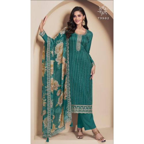 Product type: Kuleesh brand presenting you a party wear dress material in moong silk .