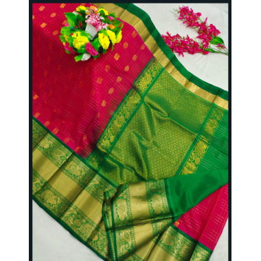 We are bringing you a traditional wear:Mangalagiri pattu kuppadam gap border with Jari check and Buta design saree-AZ-2MG-02