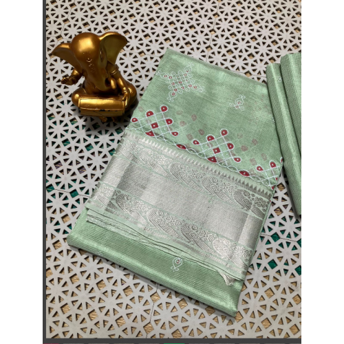 Model:Kanchi border kolam screen printing pattu sarees