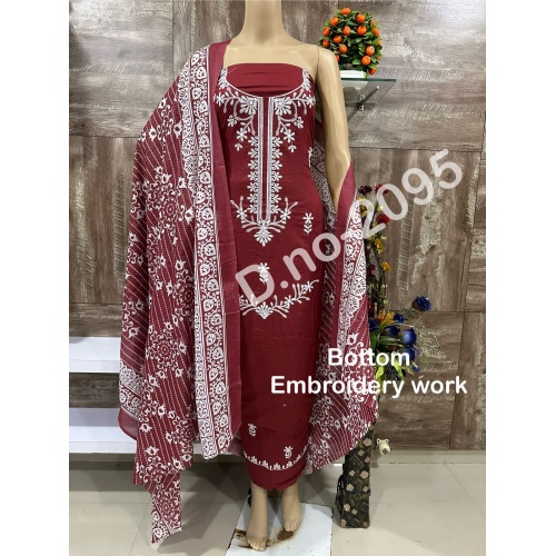 We are presenting you a pure cotton with beautiful print with fancy work in neck salwar dress material -2095-C