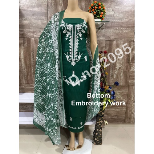 We are presenting you a pure cotton with beautiful print with fancy work in neck salwar dress material -2095-D