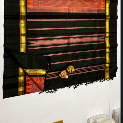 | Product type | Pure Kanchipuram handloom weaving double warp silk saree with contrast color Korvai temple design border comes with silk mark certificate . |