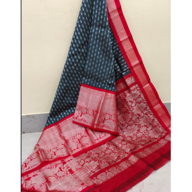 | Product type | Party wear mangalagiri silk saree with weaving border and contrast color blouse. |