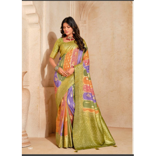 Elegance personified Silk meets vibrant designer weaving, creating a stunning combinations sophisticated charm on silk, perfect for making a statement