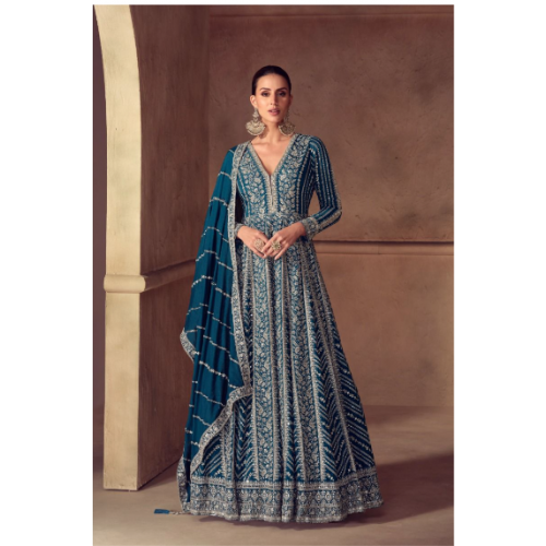 Presenting a premium Real Chinon Anarkali Gown with exquisite heavy embroidery work, designed for an elegant and festive look.