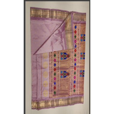 Product type:Paithani silk sarees are renowned for their luxurious texture, intricate designs, and rich heritage. Originating from Yeola in Maharashtra, these sarees are handwoven by skilled artisans using the finest silk and pure zari.