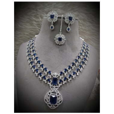 | Product Name | Stylish Design Crystal Diamond single Layer Necklace with Earrings & Mang Tikka Jewlery Set | |