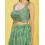 This vibrant chinnon lehenga features a beautiful mix of Green Bandhani-inspired position prints with zari and sequins embroidery